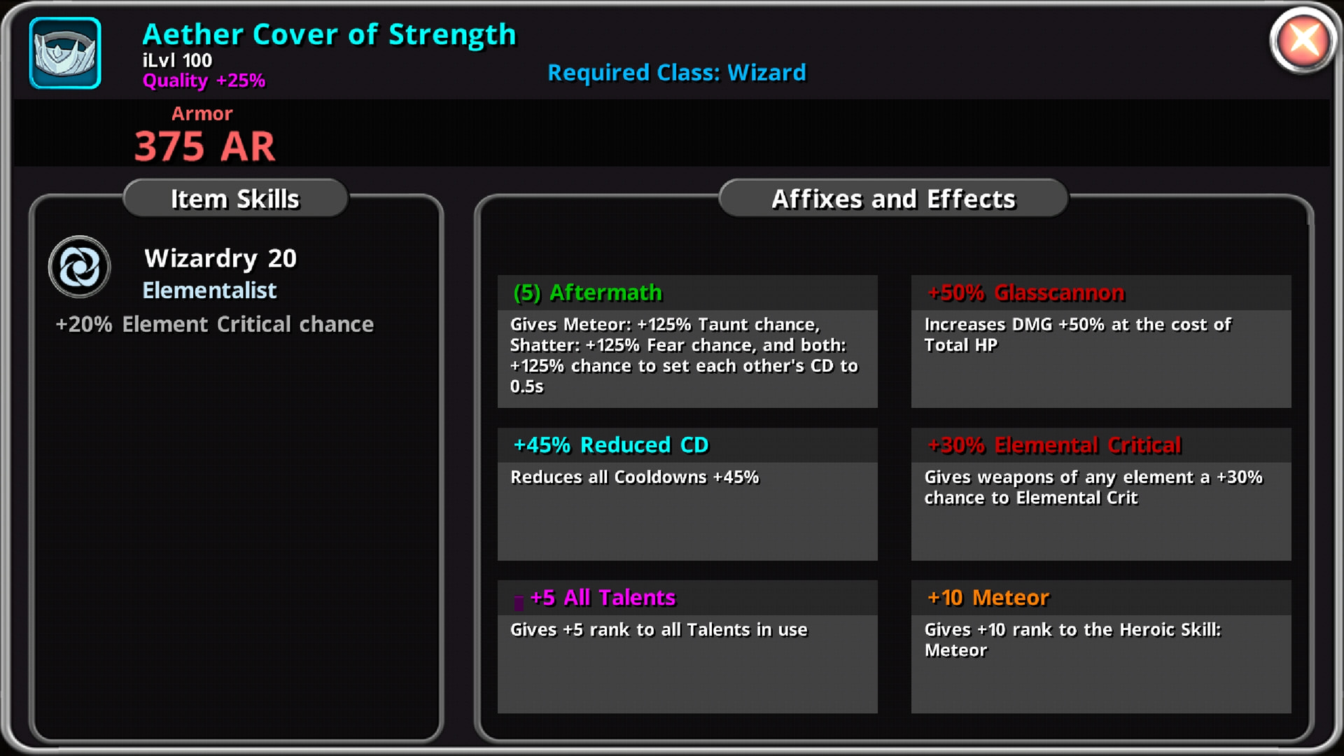 Oh, an actual Aftermath build. I recommed the Wizardry talent to enable CF easier, also remove Item Quantity. This is not a farming build as far as i see.