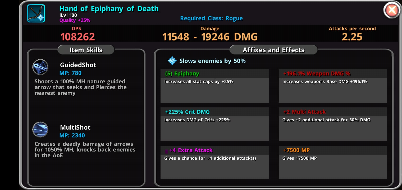 First, I’d like to thank @Golem for sharing the build structure with me. I must say I’m having a lot of fun with it; I’m currently climbing floor 600 and the damage is absurd, haha. Ignore the lack of MP reduce on the bow, as I haven’t gotten it yet, haha. So I put a temporary 7500 MP to work around it, and it’s doing well so far. My goal with this post is to find out from more experienced players if anything can still be improved. I believe there is; nothing is so good that it can’t be improved, right? However, I can’t see any improvements, so I’m accepting suggestions. Thank you in advance, gentlemen!