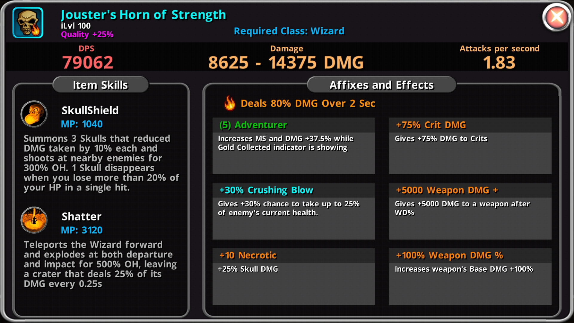 I don’t know if you need it, but Rogue Hunger Trap Jaspers to Wizard Skull with a Legend +200% Weapon DMG affix. (I have it on my Wizard Ice Farm Build and Wizard Fire Floor Climbing Build)