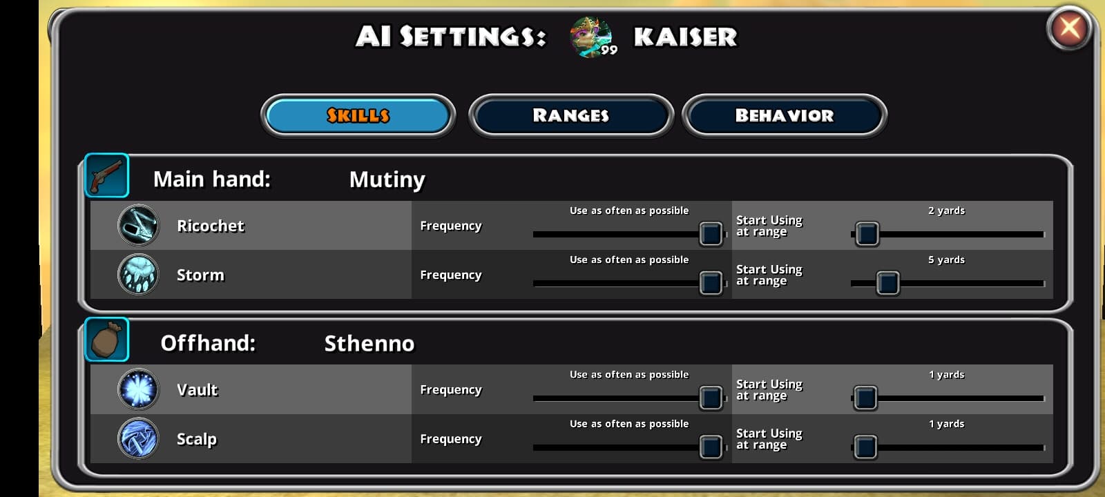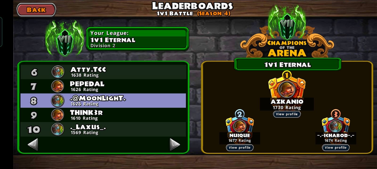 Im tweaking my build but its going to be costly in gems. But basically same build. I have noticed some stats that can be improved. But its my AI thats the problem. I got demoted from division three and got back in again. So i looked at how i won. Its a suicide build. You vault to your opponent. Cast storm to freeze. Leap back and use the timewarp and ricochet combo then vault around them at arms length repeating the technique.