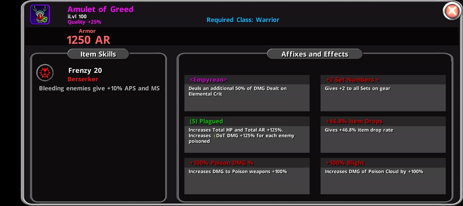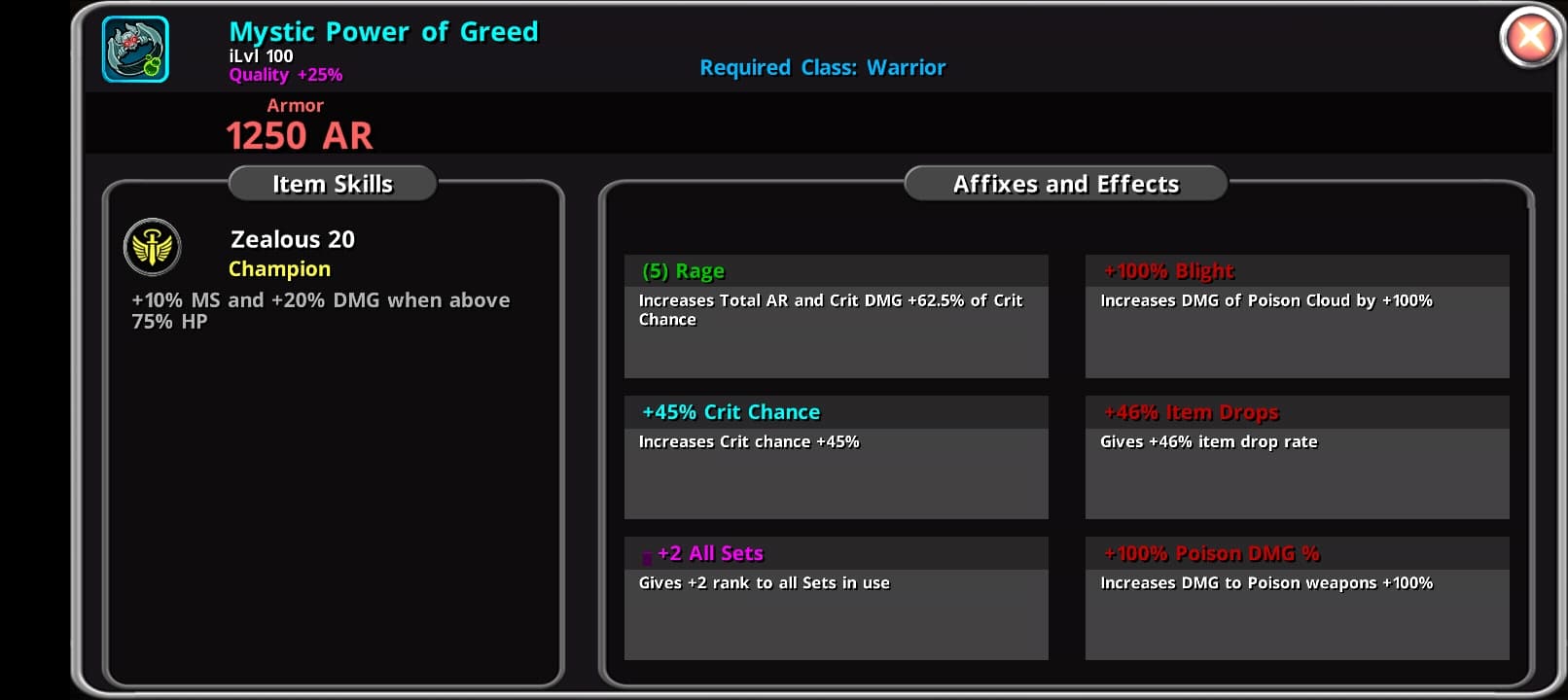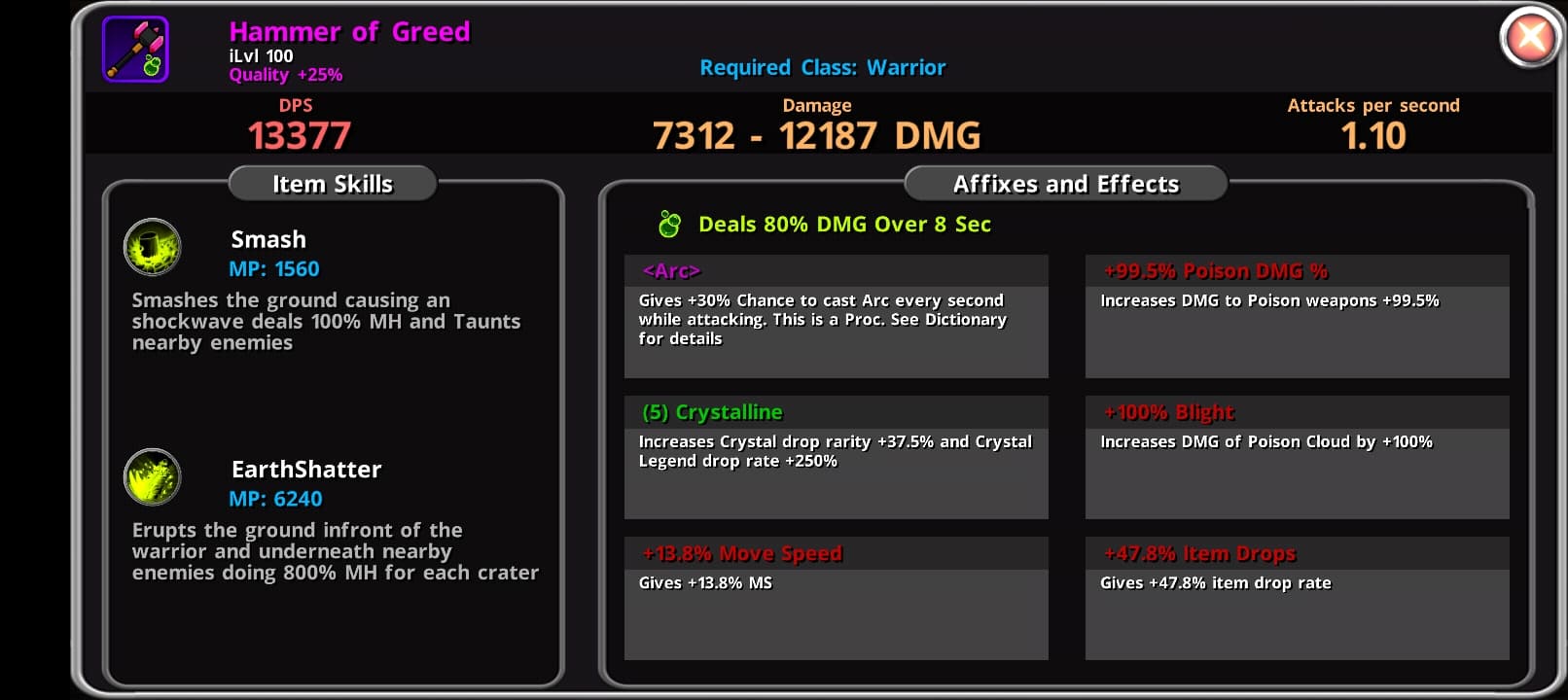 Demonic Set works good with Crushing Flames, and can be rolled with Amethyst.